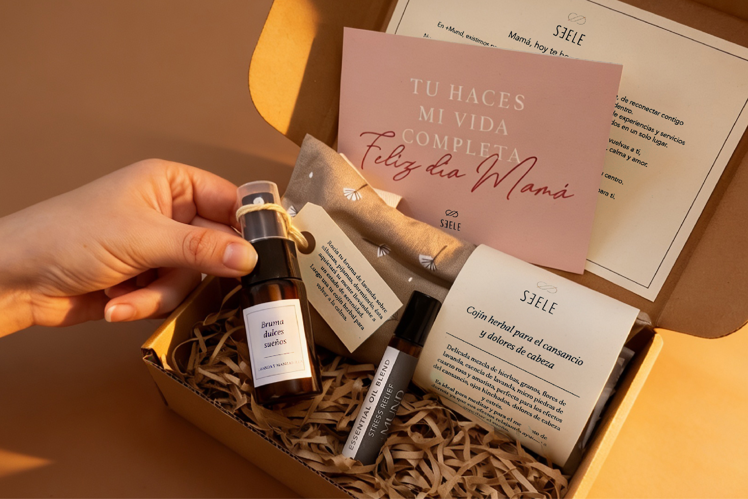 Regálale un momento de paz profunda en casa con nuestra caja de experiencia que incluye un cojín herbal, bruma de lavanda y manzanilla, y un roll-on anti-stress. El detalle perfecto para que ella pueda pausar, reconectar y transformar su energía.